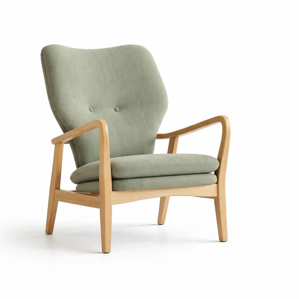 Material: Rahmen aus massivem Eichenholz, Bezug aus Polyestergewebe, Polsterung aus Schaumstoff
